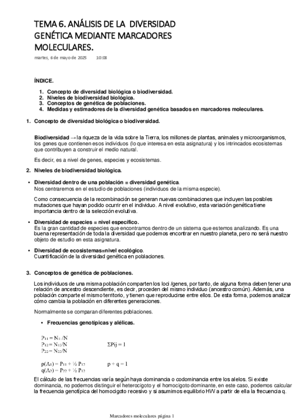He publicado nuevos apuntes de 2º Marcadores Moleculares: TEMA-6.-ANALISIS-DE-LA-DIVERSIDAD-GENETICA-MEDIANTE-MARCADORES-MOLECULARES..pdf