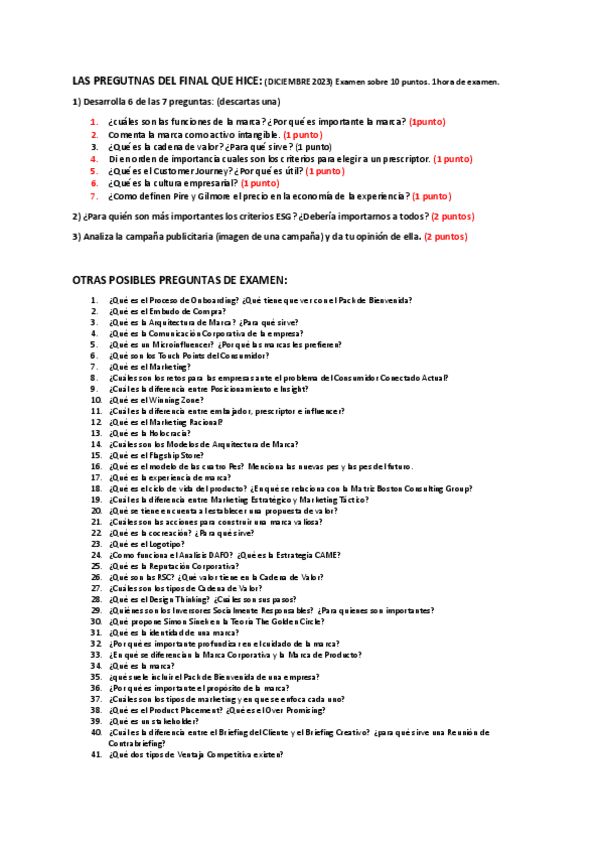 He publicado nuevos examenes de 1º MARKETING DE MARCA: Preguntas Examen. Marketing de Marca. 1º carrera.pdf