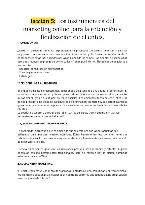 He publicado nuevos apuntes de 4º Marketing de Servicios: lección 5_ Los instrumentos del marketing online para la retención y fidelización de clientes.pdf
