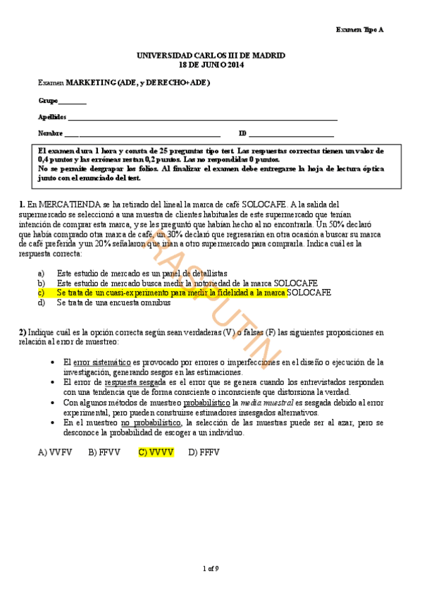 He publicado nuevos examenes de 3º Marketing: Ejemplo-Examen-Final.pdf