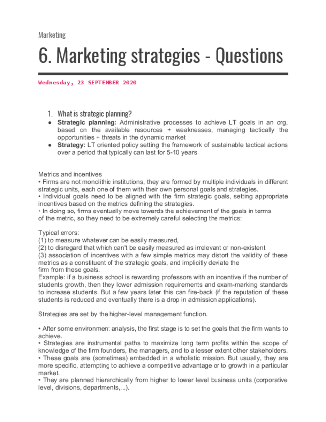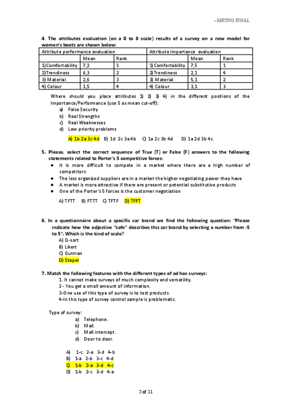 Possible exam questions about T3 marketing research 2 (made by me, not professor's questions)