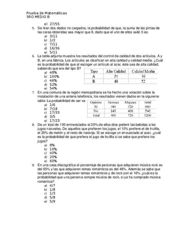 He publicado nuevos examenes de 3º Matemática: Prueba-Probabilidad-condicionada-y-probabilidad-total.docx