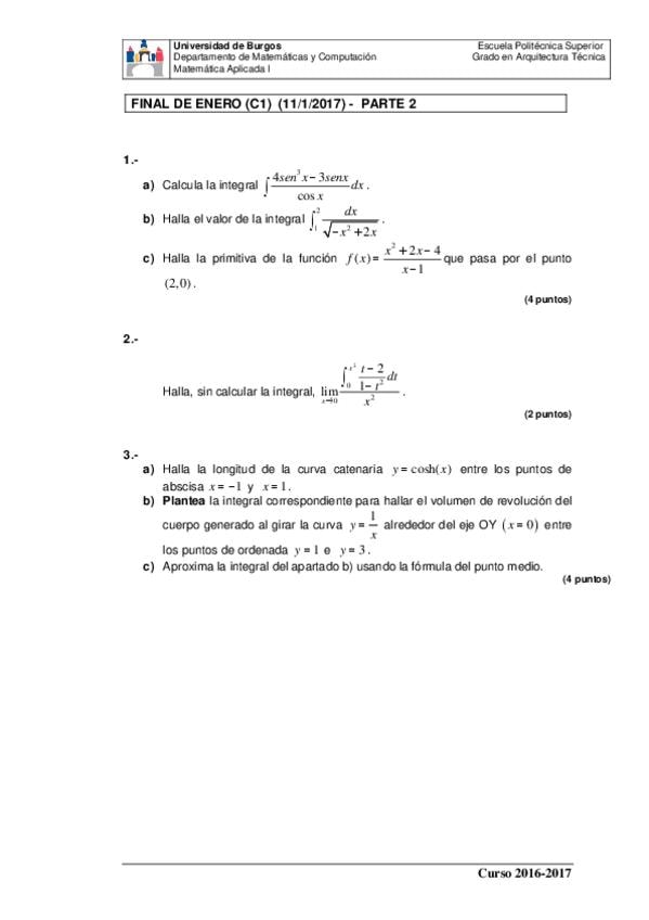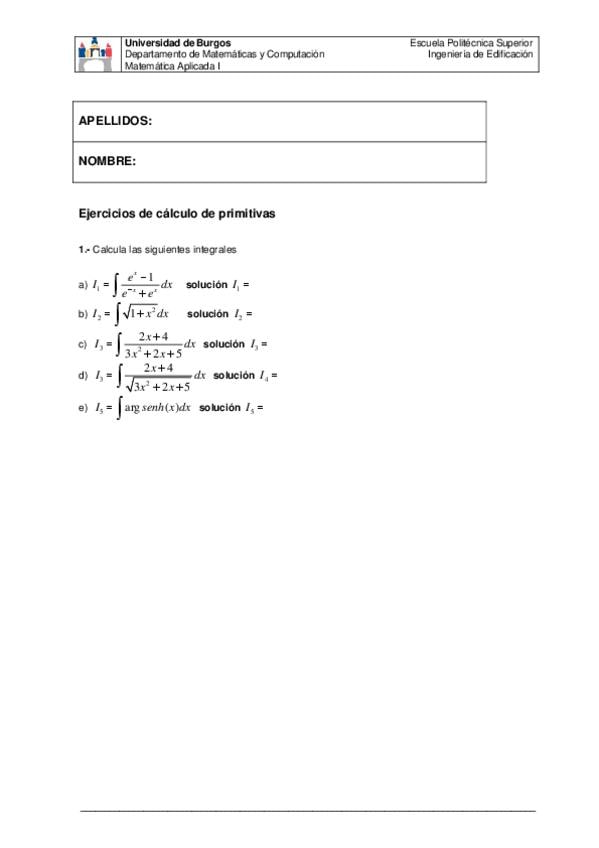 He publicado nuevos apuntes de 1º Matemática Aplicada I: ejercicios-integrales.pdf