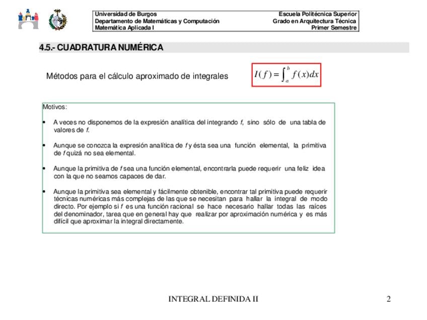 He publicado nuevos apuntes de 1º Matemática Aplicada I: Presentacion-cuadratura-numerica.pdf