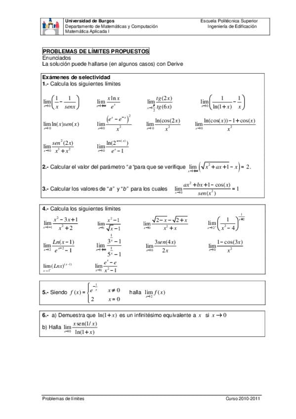 He publicado nuevos apuntes de 1º Matemática Aplicada I: ProblemasLimites.pdf