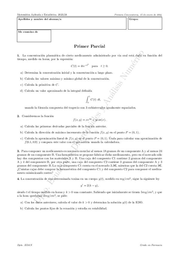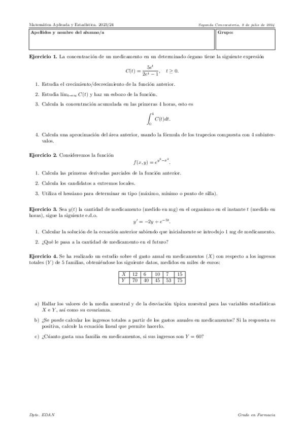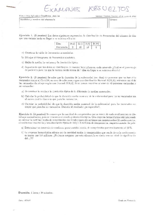 He publicado nuevos examenes de 1º Matemática Aplicada y Estadística: 2PARCIAL.pdf
