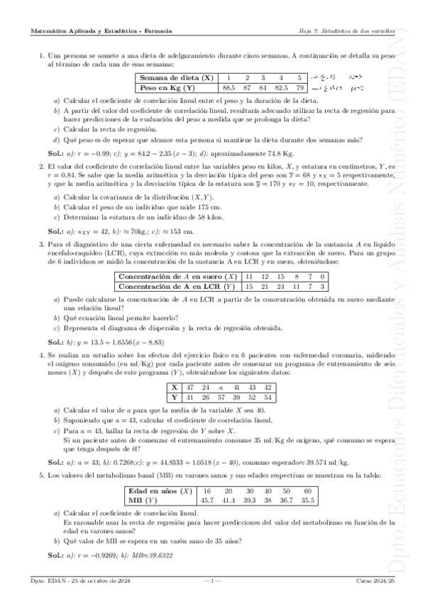 He publicado nuevos ejercicios de 1º Matemática Aplicada y Estadística: Hoja7-Bidimensional.pdf