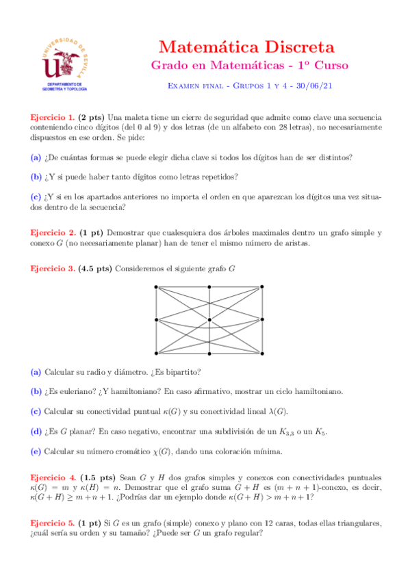 He publicado nuevos apuntes de 1º Matemática Discreta: Ejercicios-Extra-Grafos.pdf