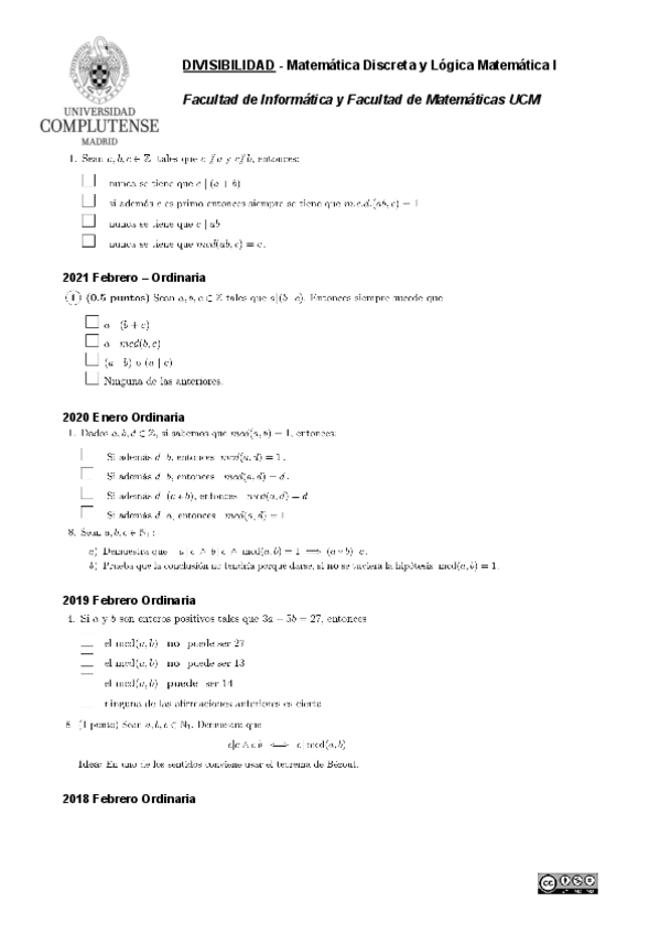 He publicado nuevos ejercicios de 1º Matemática Discreta y Lógica Matemática I: Soluciones-Divisibilidad-Maximo-Comun-Divisor-Primos.pdf
