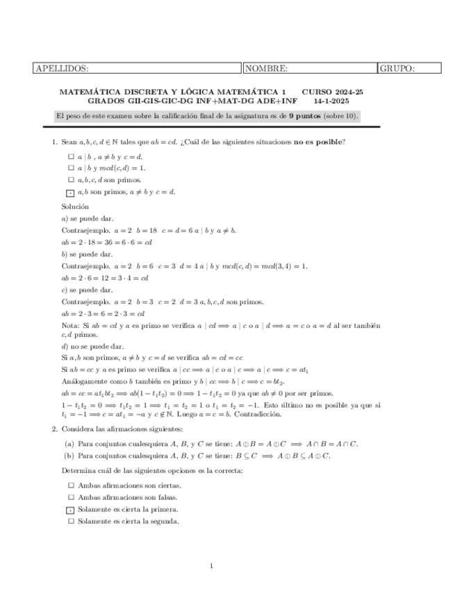 He publicado nuevos examenes de 1º Matemática Discreta y Lógica Matemática I: PARCIAL-1-2024-2025-Vers2-CON-SOLUCION.pdf
