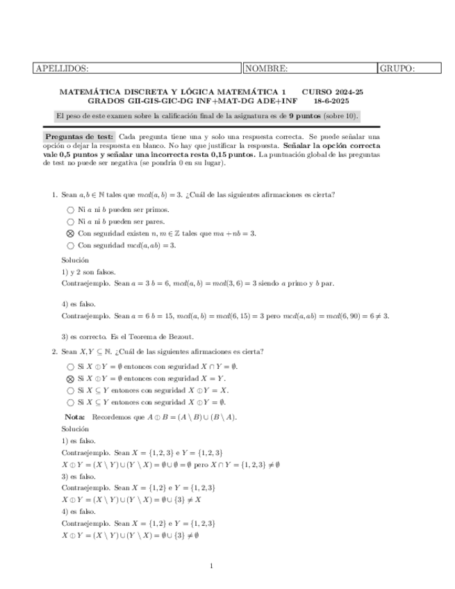 He publicado nuevos examenes de 1º Matemática Discreta y Lógica Matemática I: PARCIAL-1-2024-2025-Vers3-CON-SOLUCION.pdf