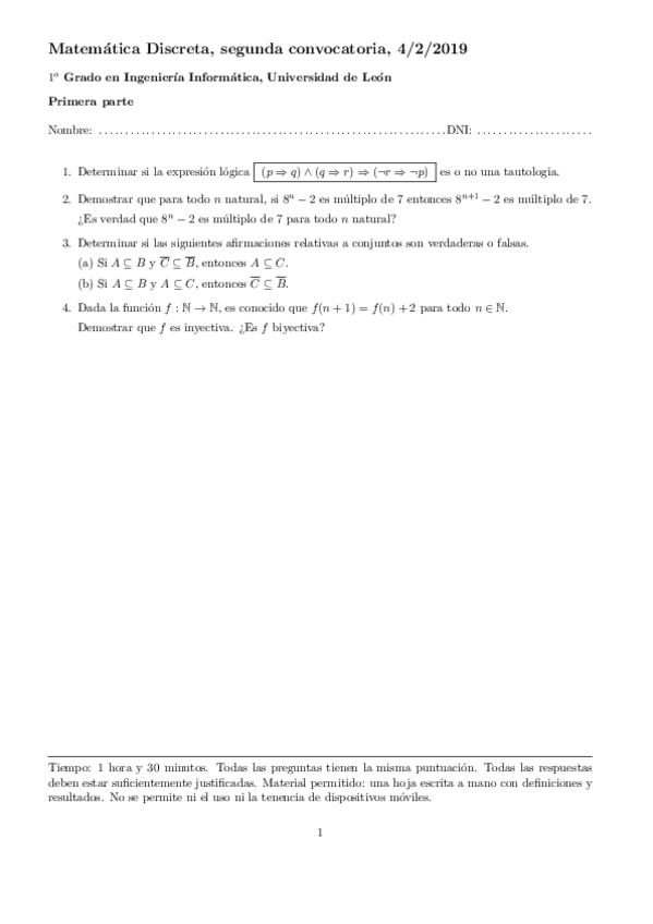 He publicado nuevos examenes de 1º Matemática Discreta: Examen-Matematica-Discreta.pdf