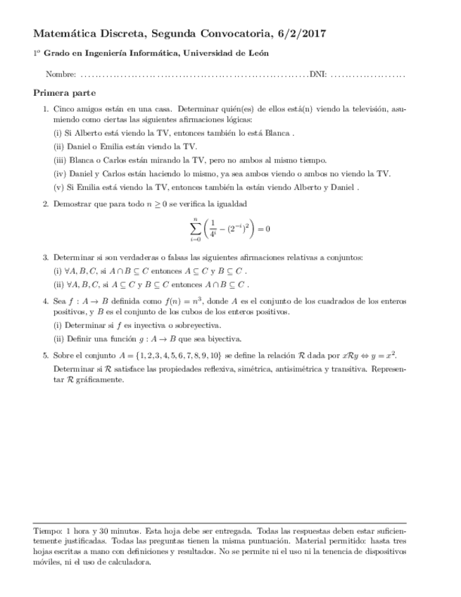 He publicado nuevos examenes de 1º Matemática Discreta: II-Examen-Matematica-Discreta.pdf