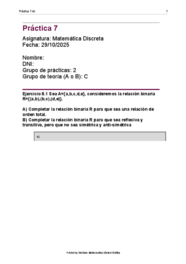 He publicado nuevos practicas de 1º Matemática Discreta: PRACTICA8DISCRETEMATHEMATICS.pdf