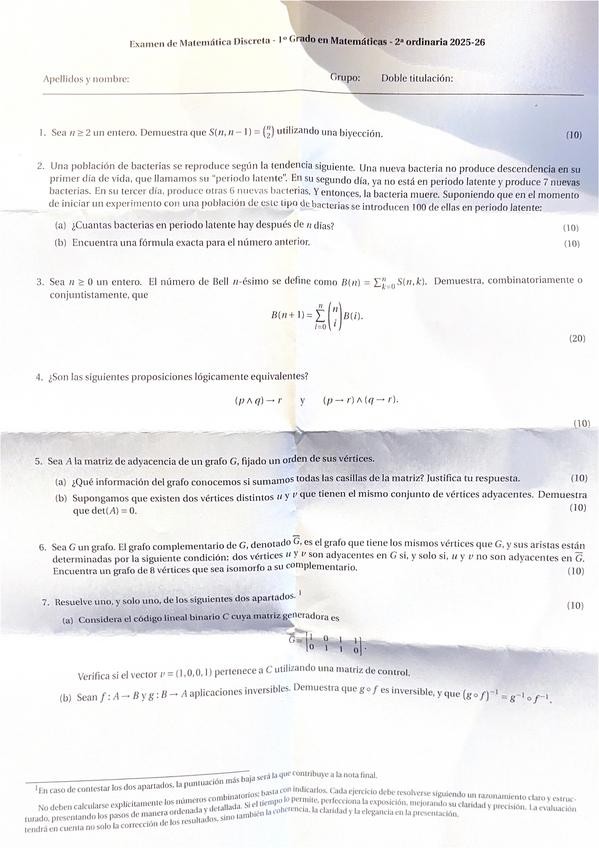He publicado nuevos examenes de 1º Matemática Discreta: 2a-Ordinaria-2025-2026.pdf