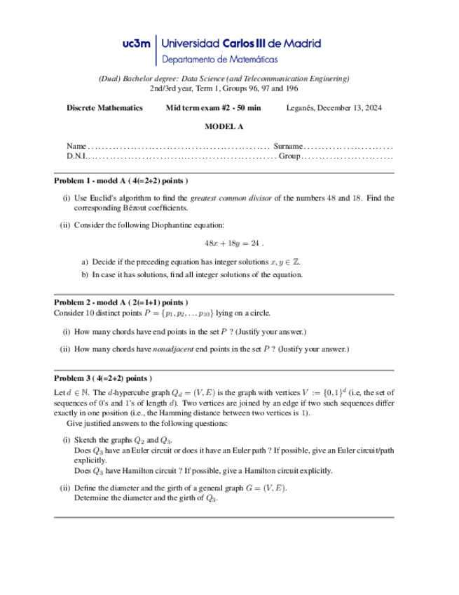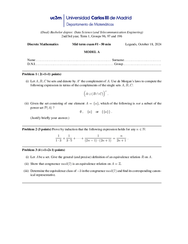 He publicado nuevos examenes de 2º Matemática Discreta: Sol-Midterm-1-Model-A.pdf