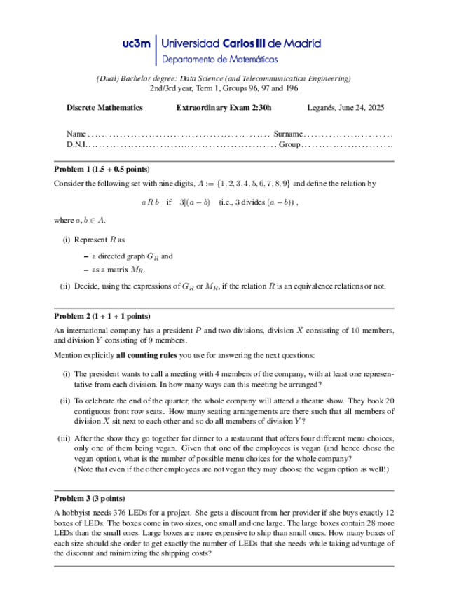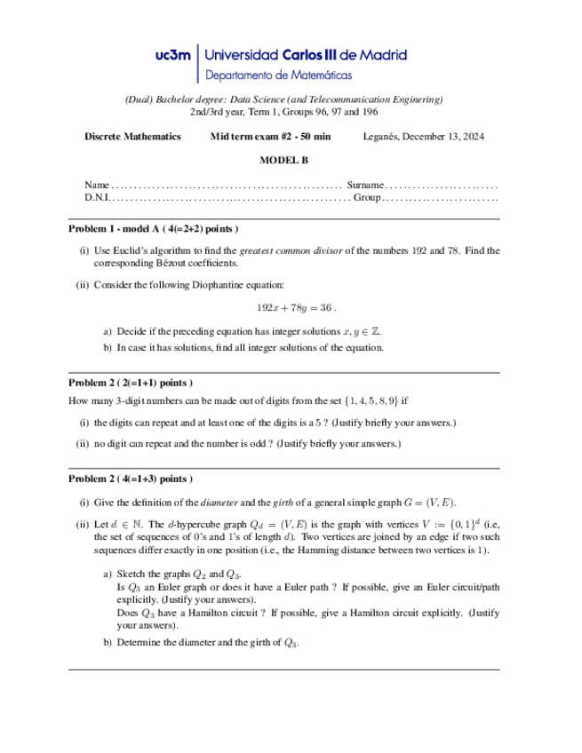 He publicado nuevos examenes de 2º Matemática Discreta: MID-TERM-2-2024-25-MODEL-B.pdf