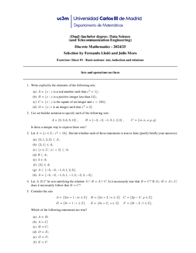 He publicado nuevos ejercicios de 2º Matemática Discreta: Exercise unit 1