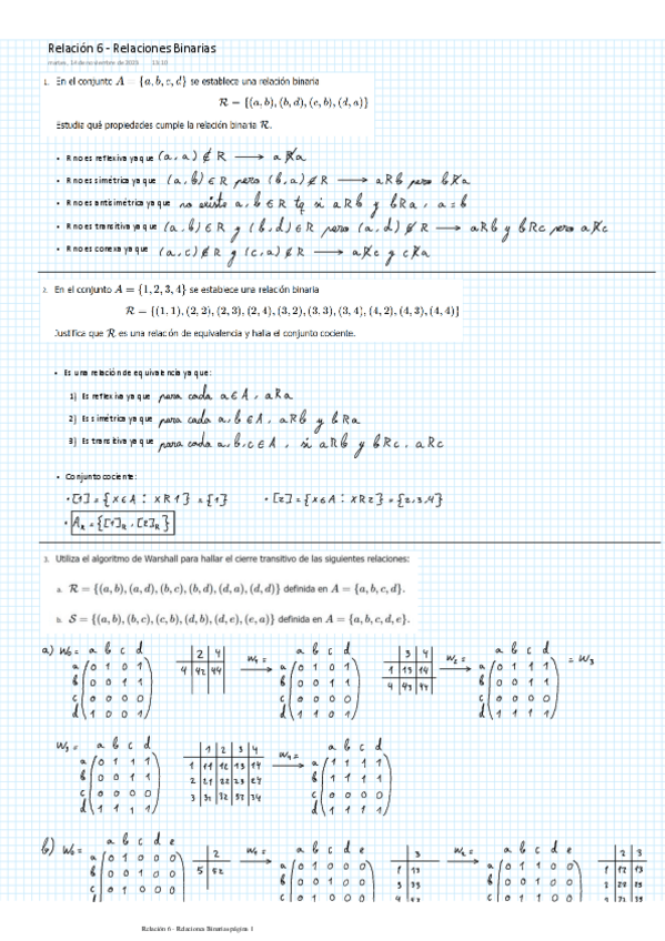He publicado nuevos ejercicios de 1º Matemática Discreta: RELACIONES RESUELTAS 1 - 10 (2023)