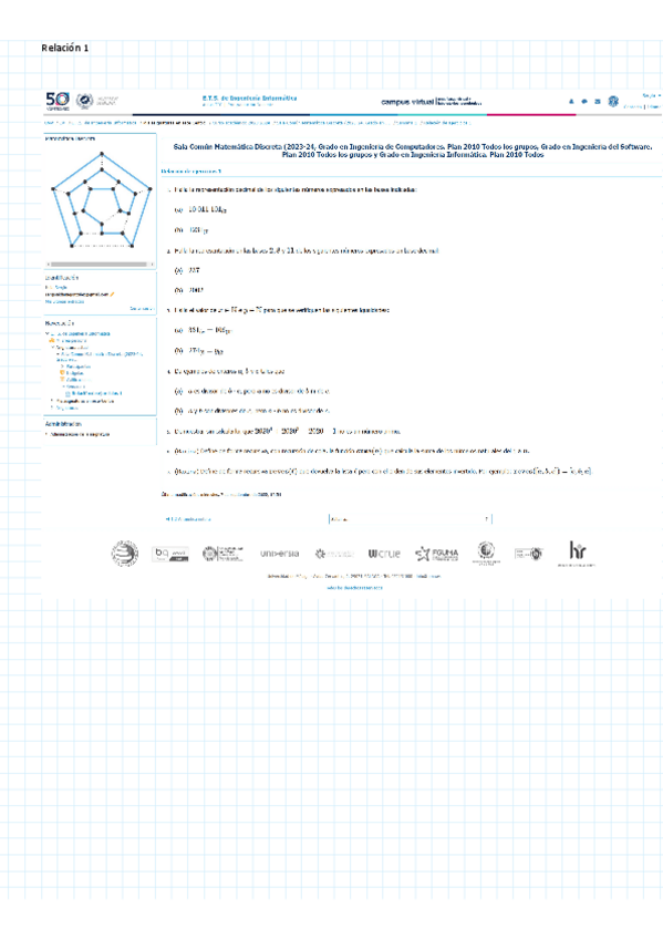 He publicado nuevos ejercicios de 1º Matemática Discreta: Relaciones de ejercicios