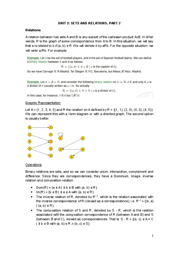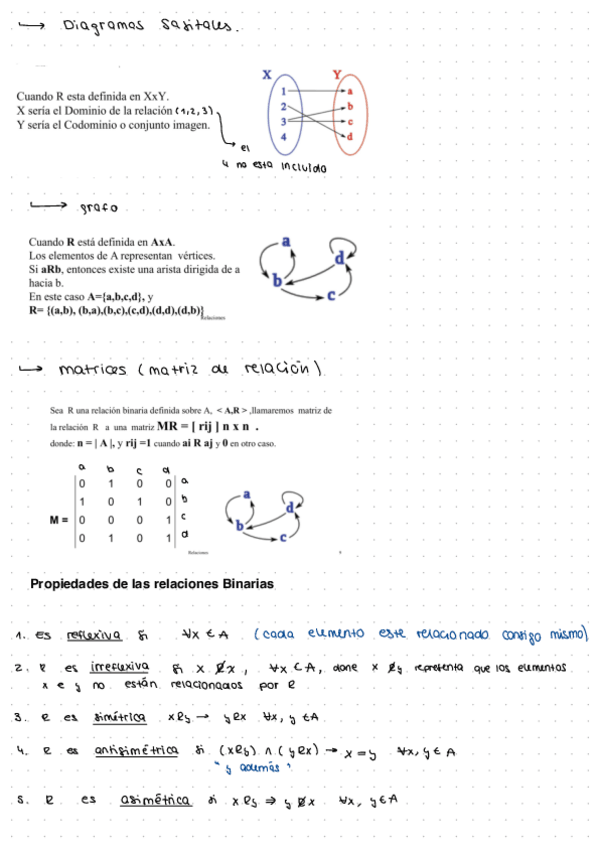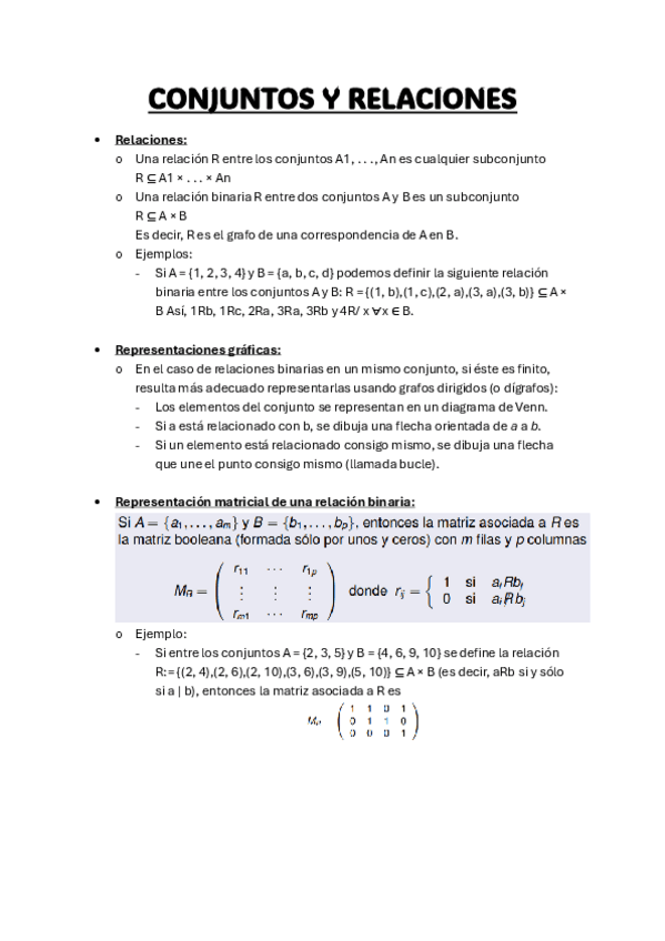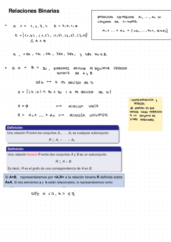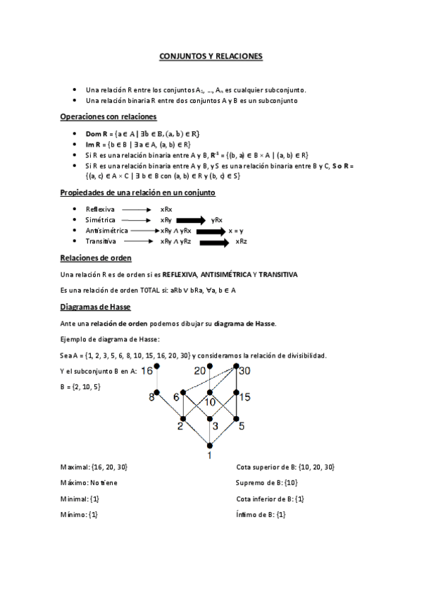 Aquí tenéis un pequeño pero buenísimo documento, resumen-explicación, de las relaciones binarias y todo lo que las acompaña.