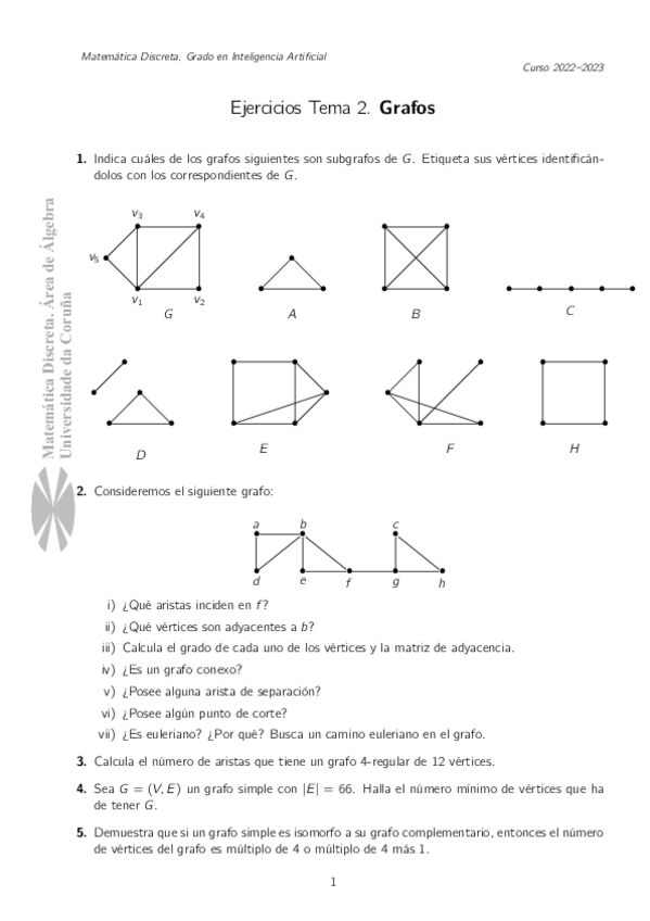 He publicado nuevos ejercicios de 1º Matemática Discreta: tema2grafossol.pdf