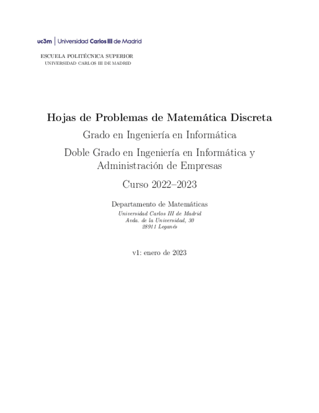 He publicado nuevos ejercicios de 1º Matemática Discreta: P1-resuelta-matematica-discreta.pdf
