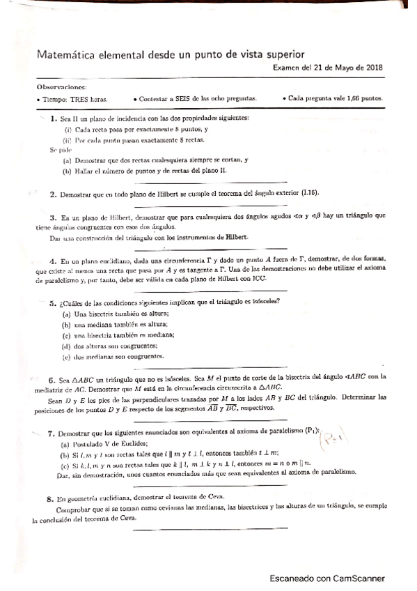 He publicado nuevos ejercicios de 3º Matemática Elemental desde un Punto de Vista Superior: Ejercicios examen