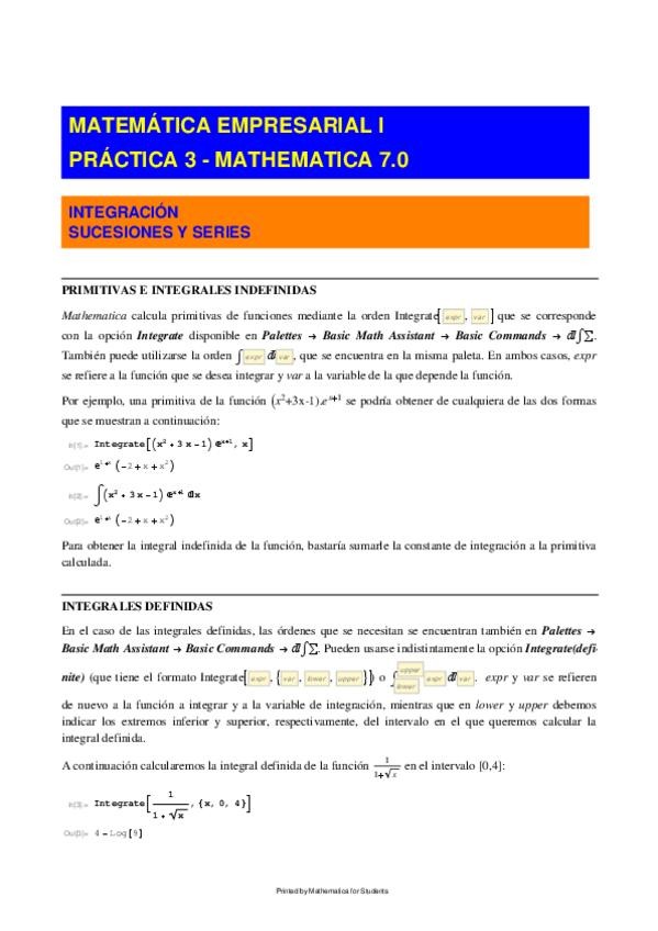 He publicado nuevos examenes de 1º Matemática Empresarial I: Mathematica