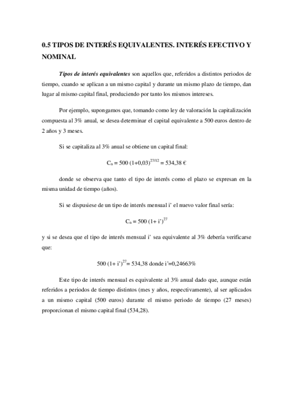 He publicado nuevos apuntes de 4º Matemática Financiera: 05-Intereses-equivalentes.pdf