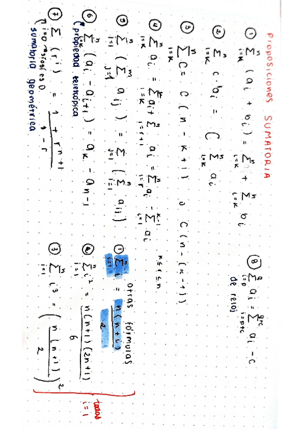 Formulario de sumatorias útil para la primera parte de la asignatura
