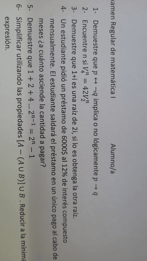 He publicado nuevos apuntes de 1º Matemática I: Ejercicios-Razonamientos.pdf