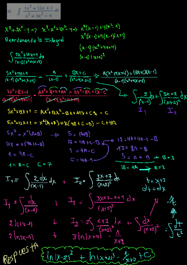 Tres integrales semilargas por fracciones parciales.
