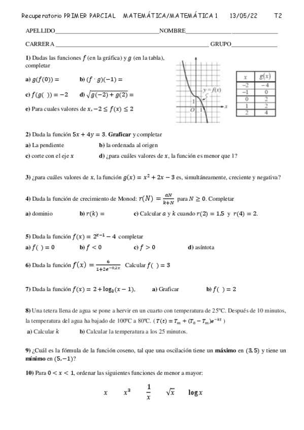 He publicado nuevos examenes de 1º Matemática I: funciones.pdf