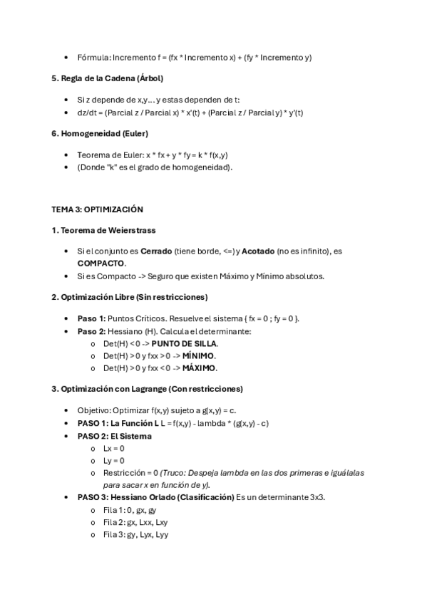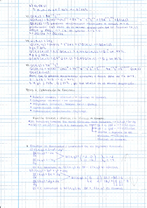 - Función convexa/cóncava/ni convexa ni cóncava - Conjuntos convexos/no convexos - Programas convexos. Teoría local-global - Optimización libre - Optimización condicionada. Lagrange