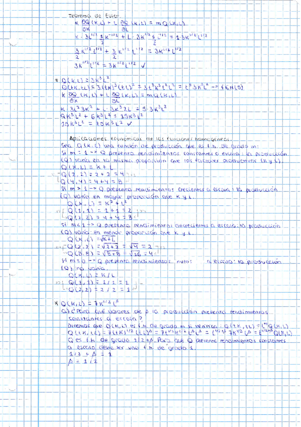 - Definición de función homogénea y teorema de Euler - Aplicaciones económicas de las funciones homogéneas - Propiedades de las funciones homogéneas