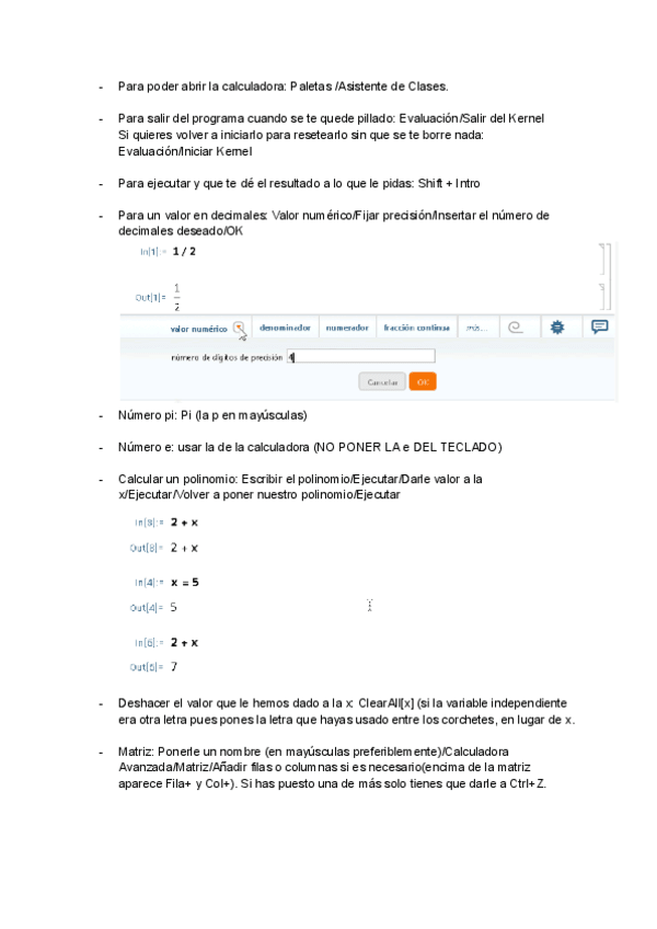 Esta es la recopilación de cosas que se dan en las primeras prácticas de Wolfram para el primer examen parcial de la evaluación continua.
