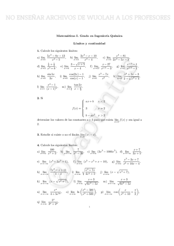 EJERCICIOS LIMITES + SOLUCIONES