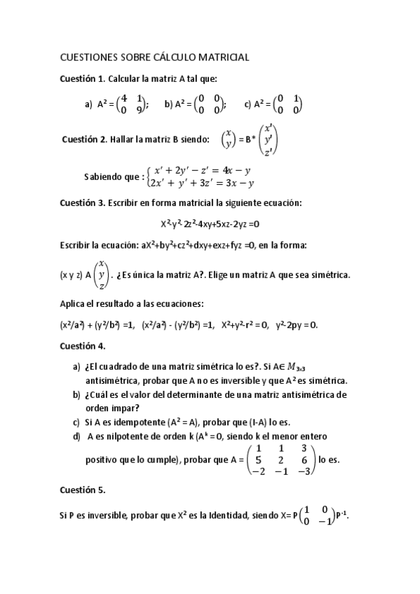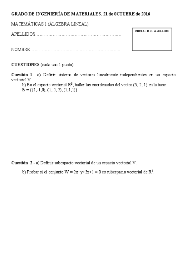 Exámenes de álgebra