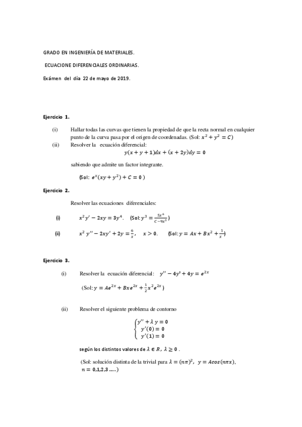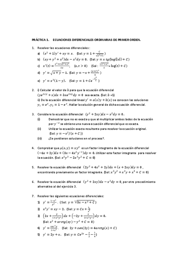 Ecuaciones Diferenciales - Ejercicios