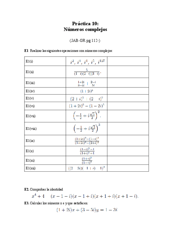 álgebra - Ejercicios