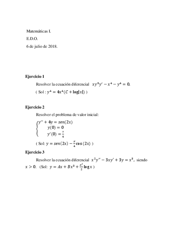He publicado nuevos ejercicios de 1º Matemáticas 1: Ejercicios propuestos de la primera presentación de EDO resueltos