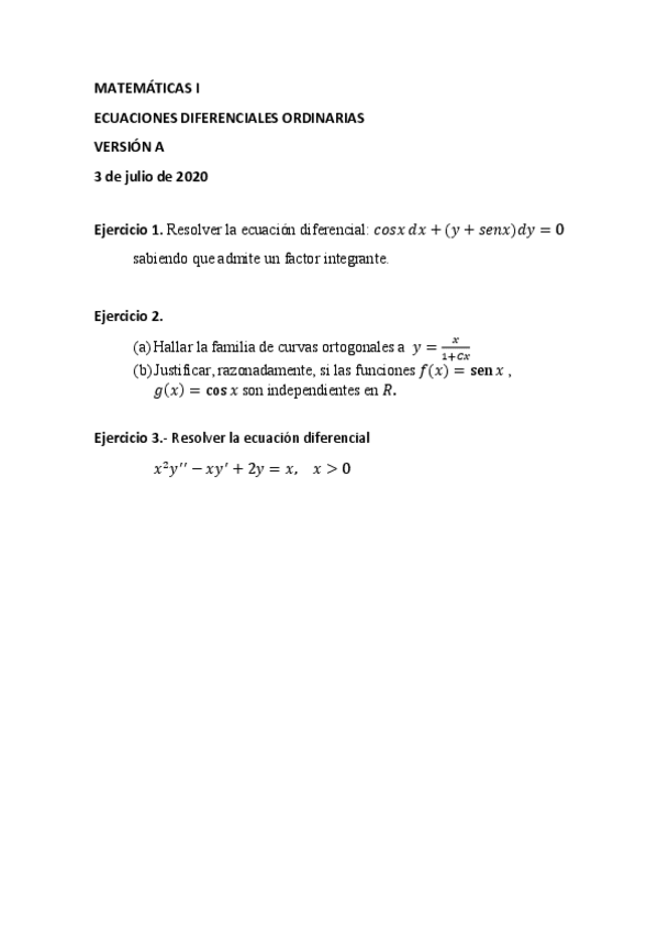 He publicado nuevos ejercicios de 1º Matemáticas 1: Ecuaciones Diferenciales - Ejercicios