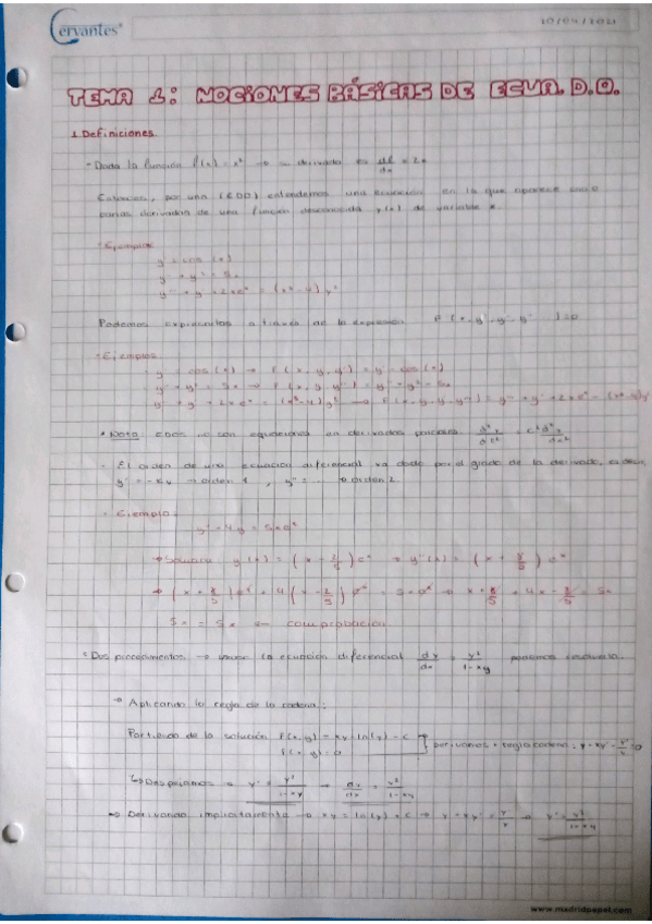 He publicado nuevos apuntes de 1º Matemáticas 1: Ecuaciones Diferenciales