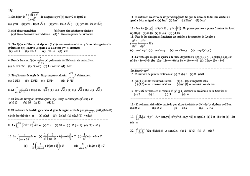 Exámenes matemáticas