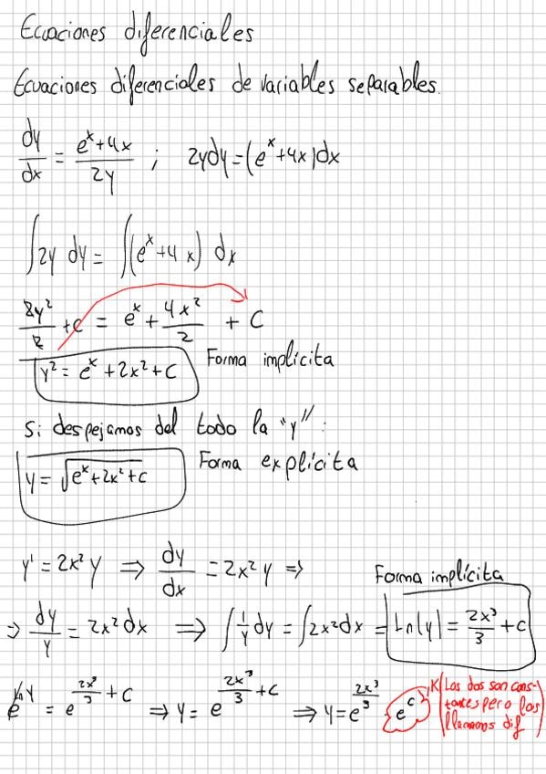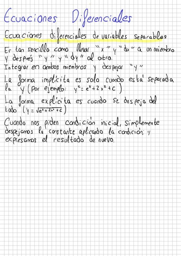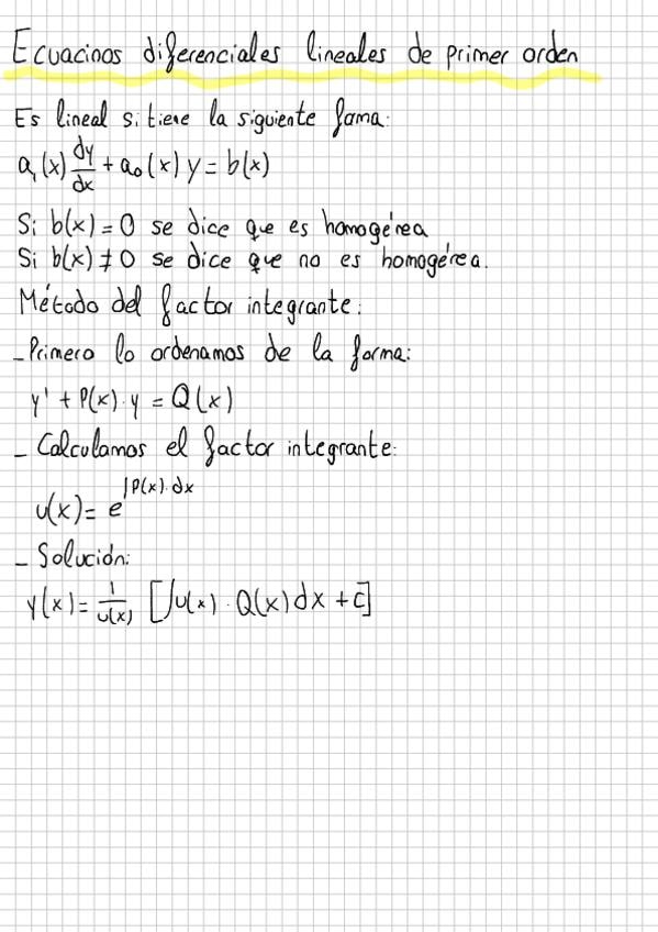 Ecuaciones diferenciales primer orden(tengo subido también un pdf sin ejercicios, por si es mas cómodo para repasar)