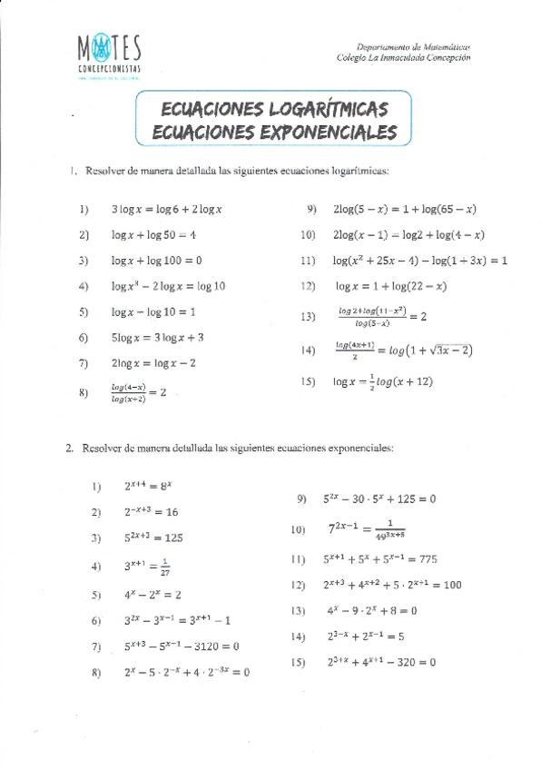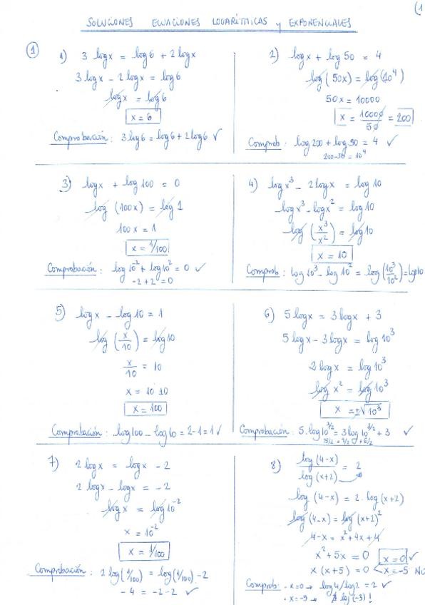 Ecuacions logarítmicas y exponenciales con soluciones