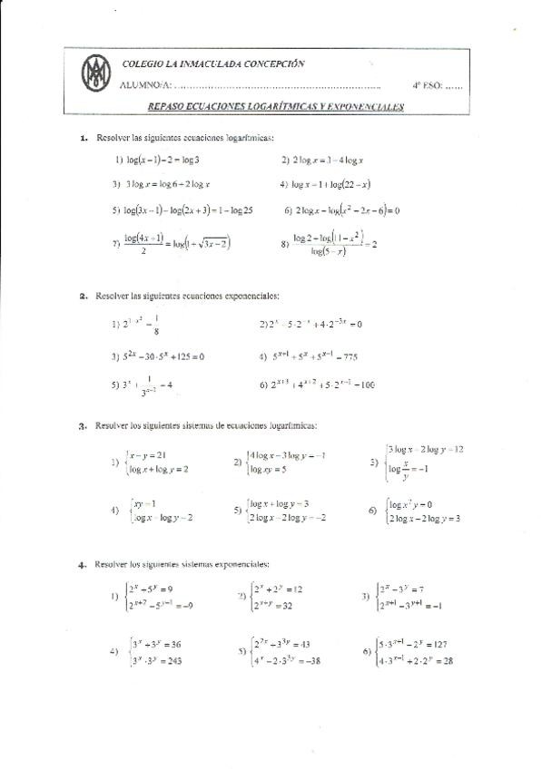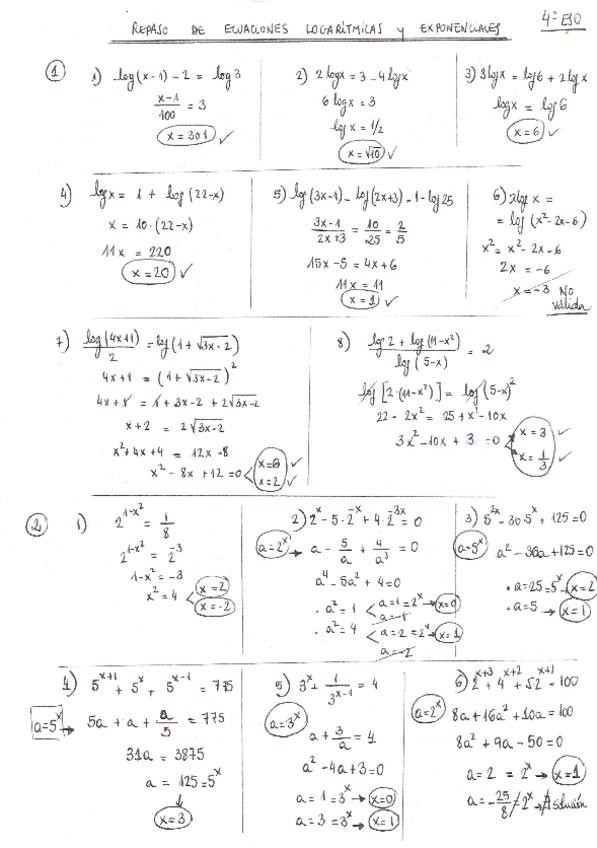 He publicado nuevos ejercicios de 4º Matemáticas a: Ecuacions logarítmicas y exponenciales con soluciones