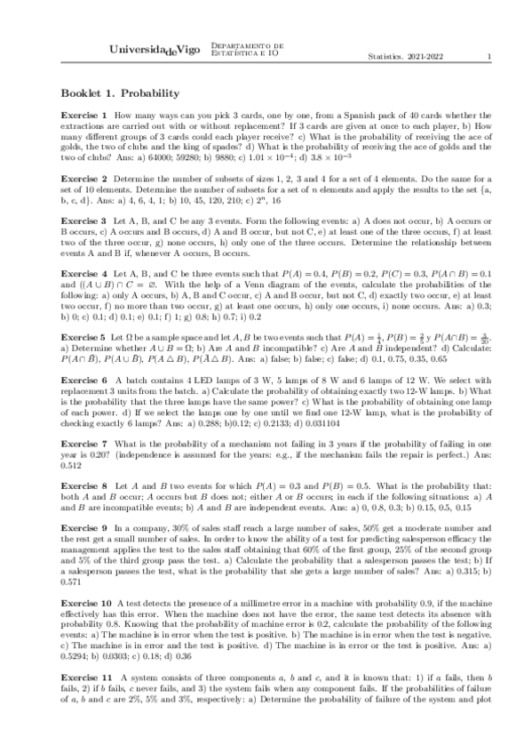 Exámenes Estadística (inglés)