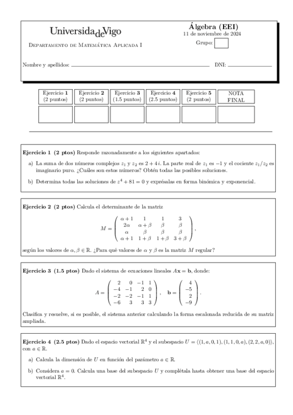 He publicado nuevos examenes de 1º Matemáticas: Álgebra y estadística: ExamenFinalAlgebra2023.pdf